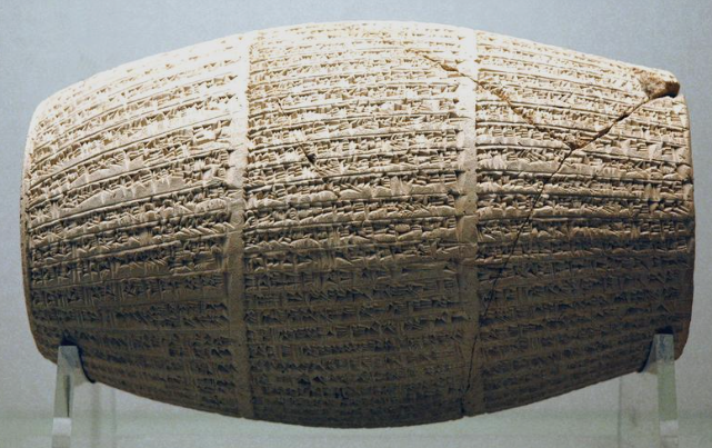 Une de ces épigraphies est la stèle de Nabonide5, dernier roi de l’empire (néo)babylonien à la fin du 6e siècle avant notre ère. Dans un songe, le dieu Marduk se révèle à Nabonide et lui dit « Ehulhul, le temple de Sin à Haran, construis sans délai ! ». Mais au lieu des préparatifs attendus, la construction est repoussée de dix ans et le texte rapporte le fait d’une révolte religieuse qui oblige le roi à s’enfuir au Yémen. Au bout de dix ans, le roi revient à Babylone, la population accepte le culte de Sin et la construction du temple commence.